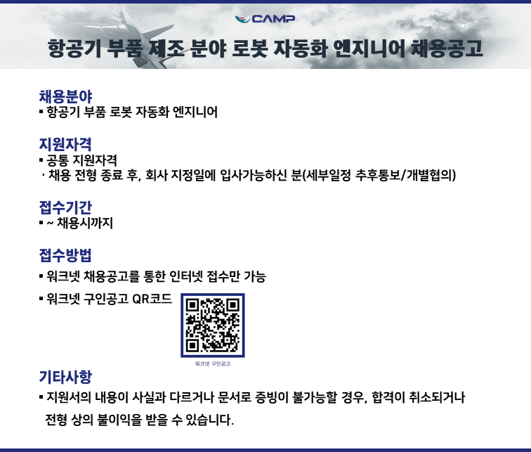 항공기 부품 제조 분야 로봇 자동화 엔지니어 채용공고